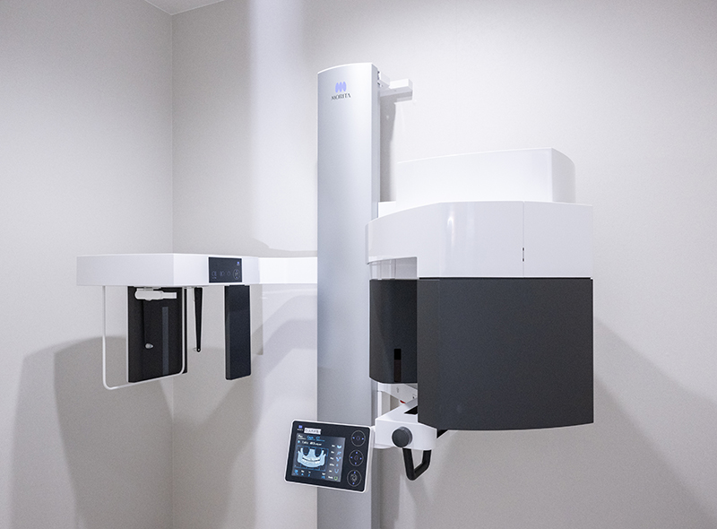 治療の安全性と精度を高めるために、当院ではCT装置を導入しています。CTを用いることで、歯の位置や角度、顎の骨の状態を立体的に分析することが可能です。これにより、お口の中の状態を詳細に把握し、適切な治療計画を立てることができます。