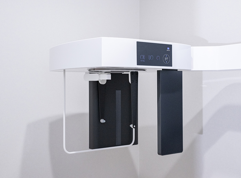 歯や顎だけでなく、頭部も含めて撮影できる矯正治療専用のレントゲンです。歯並びやかみ合わせの状態は、顔にも大きく影響しています。頭部、顎の形、歯の傾斜などを撮影することで、歯・顎・顔の全体的な変化から、治療の経過を把握できます。