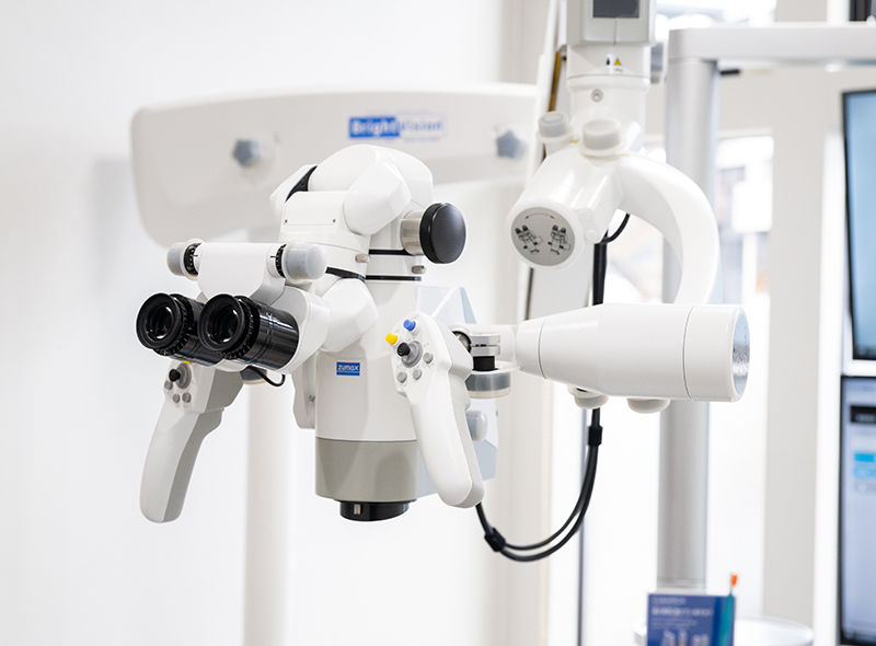 マイクロスコープは、肉眼の数十倍まで拡大できる歯科用顕微鏡です。これにより、今まで難しかった症例にも対応できるようになりました。初期のむし歯の検知や、根管治療の精度が向上するなど、さまざまな治療の質が向上しています。