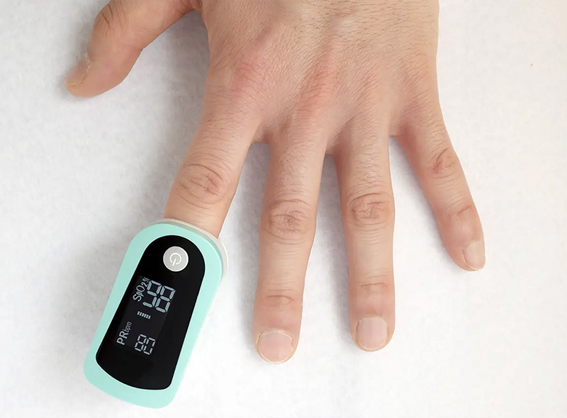 パルスオキシメーターは、指先にセンサーを装着するだけで、動脈血酸素飽和度(SPO2)と脈拍数を連続的にモニタリングできる医療機器です。パルスオキシメーターを用いることで、患者さまの呼吸状態をリアルタイムに把握し、安全な歯科治療をご提供できます。